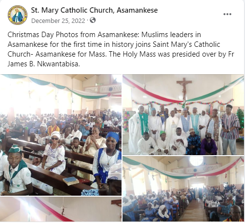 The headline of the story sort to highlight concerns raised by a section of the public on the original post made by St. Mary Catholic Church in Asamankese and not to promote hate nor define what happened in Asamankese as ecumenism.