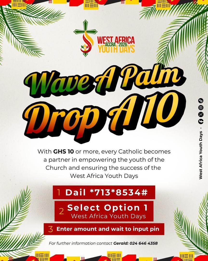 The campaign, themed “Wave A Palm, Drop A 10,” encourages Catholics to contribute at least GHS 10 towards the successful hosting of the regional youth gathering.